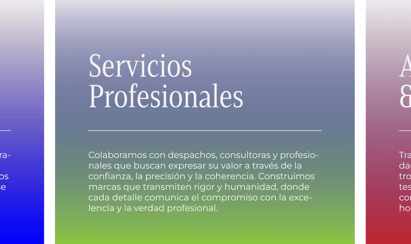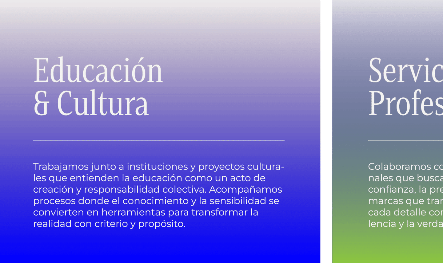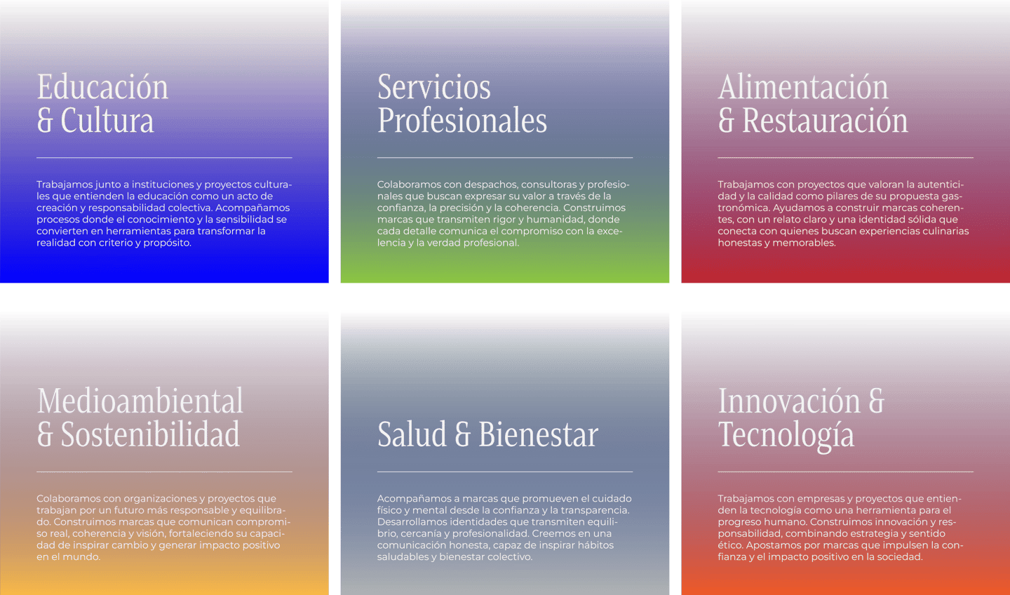 Definimos cada servicio como una respuesta específica a la necesidades, el contexto y los objetivos de cada proyecto.