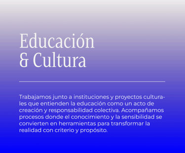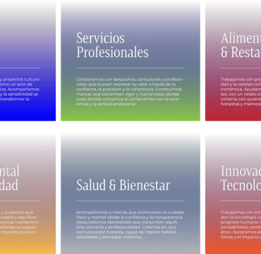Una experiencia integral que combina estrategia, identidad y comunicación. Incluye el desarrollo o rediseño de la marca, sus piezas visuales (web, papelería...) y un acompañamiento estratégico para garantizar coherencia, crecimiento y solidez.